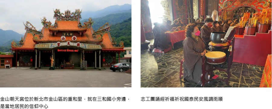 金山朝天宮位於新北市金山區重和里,供奉天上聖母為主神,天上聖母開基金身是來自福建湄州島媽祖廟,最初由台北天一宮於湄州島媽祖廟參拜時迎請回台鎮座。